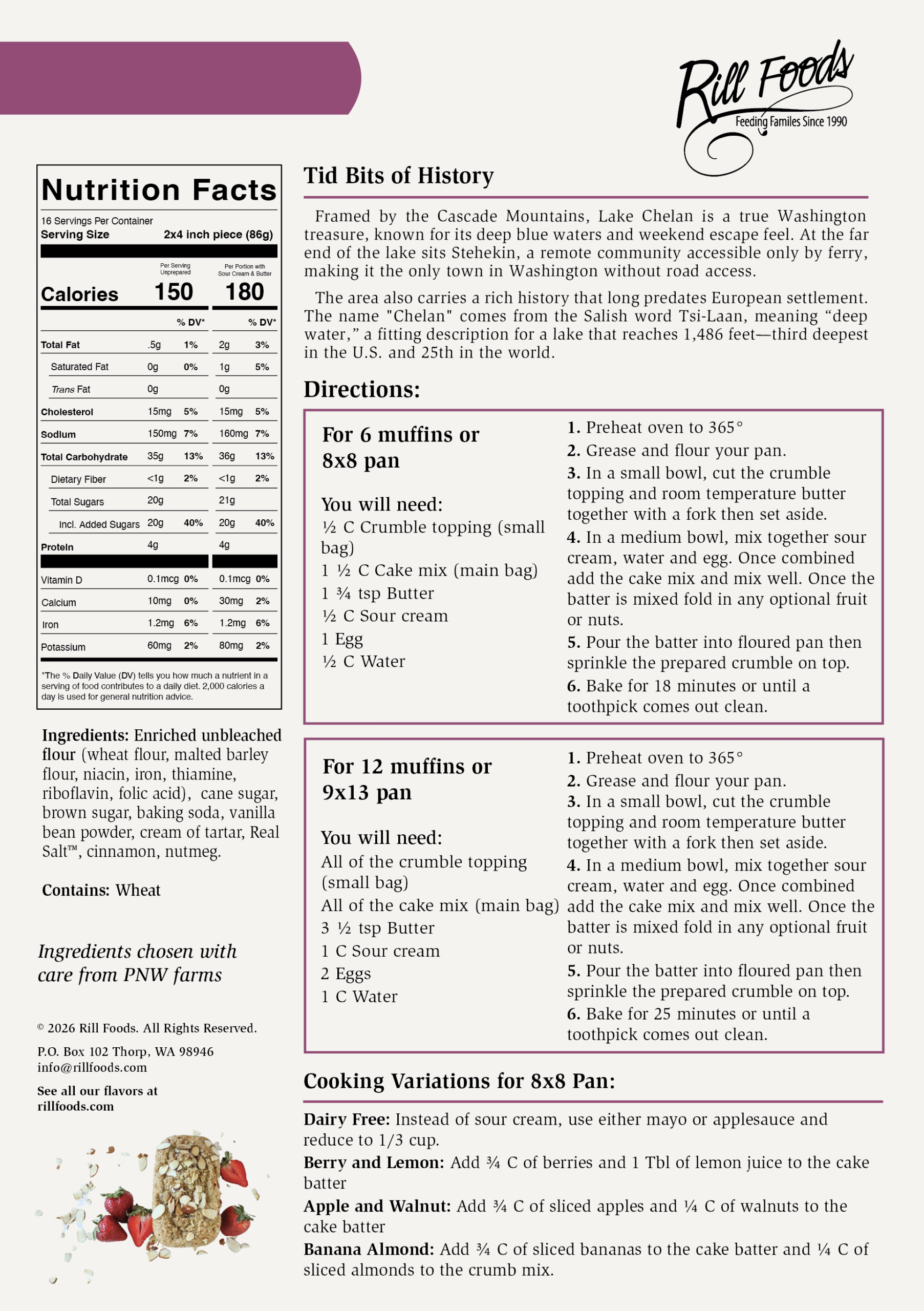 This deliciously moist cinnamon nutmeg crumb cake will have you going back for seconds, thirds, or even fourths! Check out the “Spice it up” tab to find new ways to make it even more delicious.